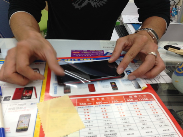 也請店長幫忙貼了一下螢幕保護貼,可惜現在還是沒有比較滿版的保護貼可以貼...殘念啊