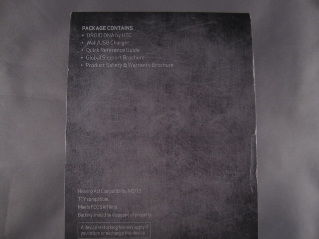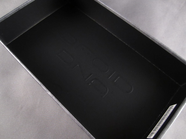 盒裝裡還刻著Droid DNA的字樣,真是用心。在這邊我也補充一個有趣的資訊,DROID這個字,是由Lucasfilm(拍攝星際大戰的電影公司)所擁有,所以在盒裝上其實有一行字有標示"DROID"是Lucasfilm授權使用,所以DROID DNA是否有付授權費不清楚,但是確定的是這個字可不是你愛用就用,要先經過Lucasfilm的授權才可以用
