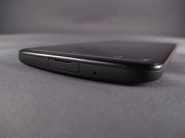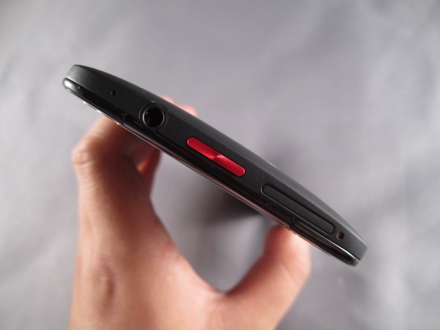 上方一樣是耳機孔,電源鍵(美國版才是用紅的,整個很搶眼),然後micro SIM卡槽,注意,美國版蝴蝶機不支援micro SD插卡,也不支援IPX5防潑水喔,所以千萬別帥氣的拿美國版蝴蝶機在雨中講電話