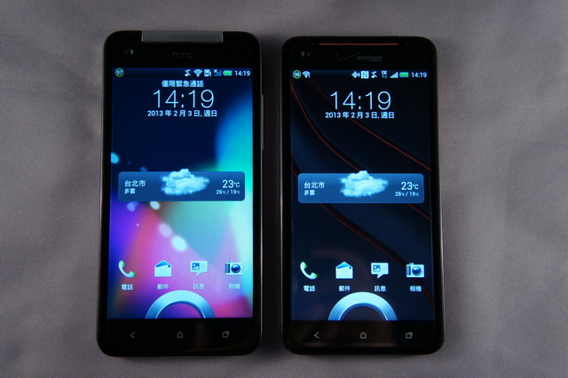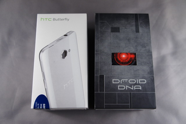 在跟我的台灣版蝴蝶機說再見前,我把它跟美國版蝴蝶機DROID DNA來一個離別快速對照,左邊是台灣版蝴蝶機,右邊是美國版蝴蝶機