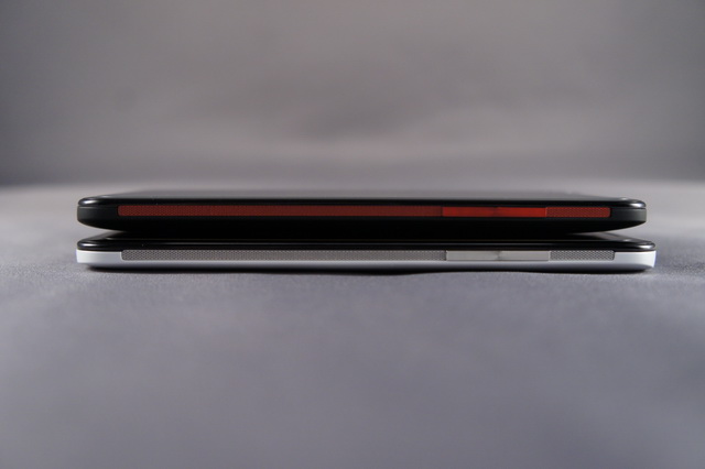 從這張應該可以更明顯的看出美國版蝴蝶機(上)的厚度上的增加 (應該是為了塞無線充電模組的關係吧我猜)