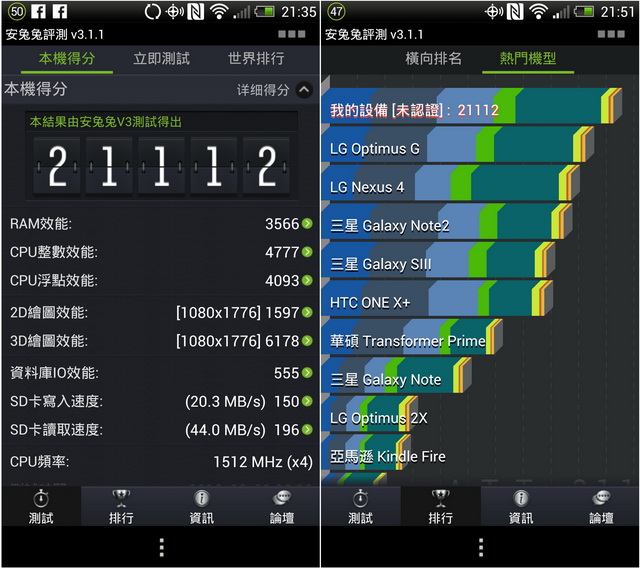 美國版蝴蝶機跟台灣版蝴蝶機一樣都是採用高通S4的四核處理器,效能沒話說,跑安兔兔輕鬆破2萬分