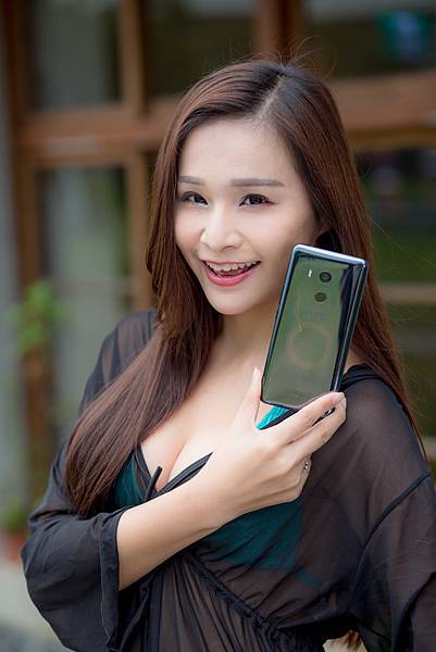 HTC U11 plus透視黑的外型特色,是採用半透明的水漾玻璃,能夠若隱若現