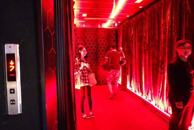 當天前往發表會現場要搭乘的這個超級大型的電梯,有夠紅~