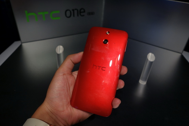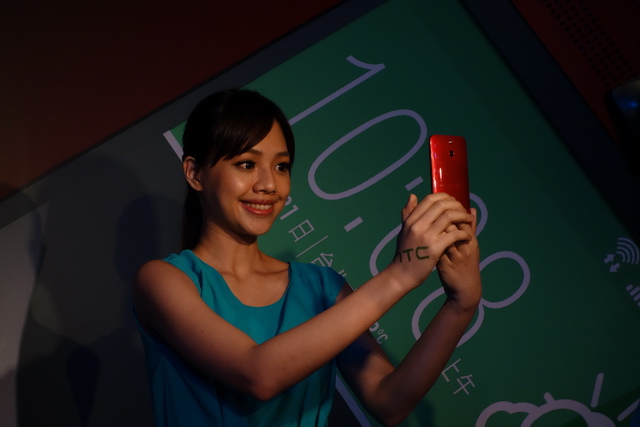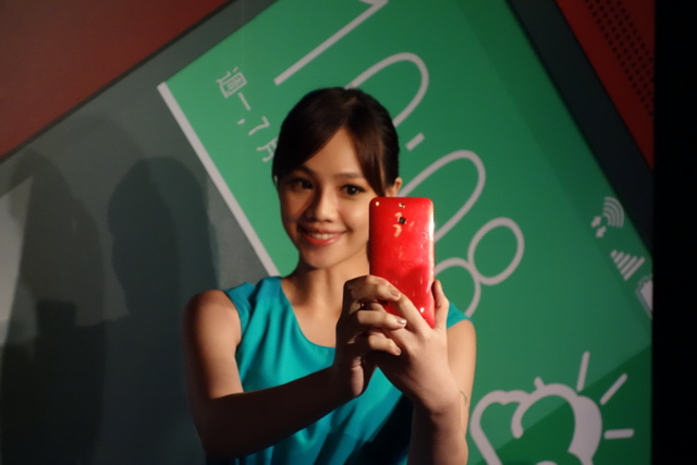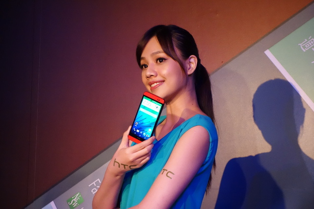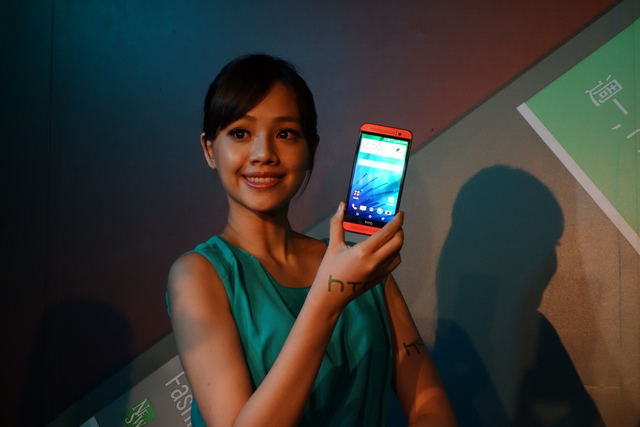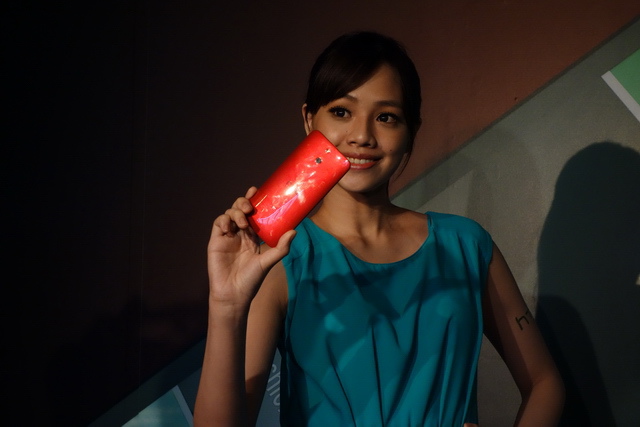 噹噹,終於看到紅色的HTC One E8 (時尚紅) 了,而且是由美麗的Model示範
