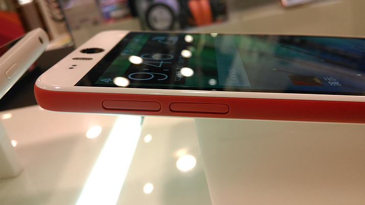 HTC在發表Desire 820時,同時也曝光了HTC最新的工藝技術-「雙色射出 Double Shot」,這種技術確保了手機能同時保有一體成型以及雙重的配色,而HTC這次推出的顏色大部分都是比較明亮的顏色,藉此吸引年輕人的目光。機身手感維持HTC一貫的好握、輕薄,機身材質的搭配也很不錯,5吋以上、5.5吋以下的大小設計的剛剛好。值得一提的是HTC獨家的BoomSound前置揚聲器被放在螢幕區塊以及鏡頭區塊的中間,不仔細看其實看不太出來。
