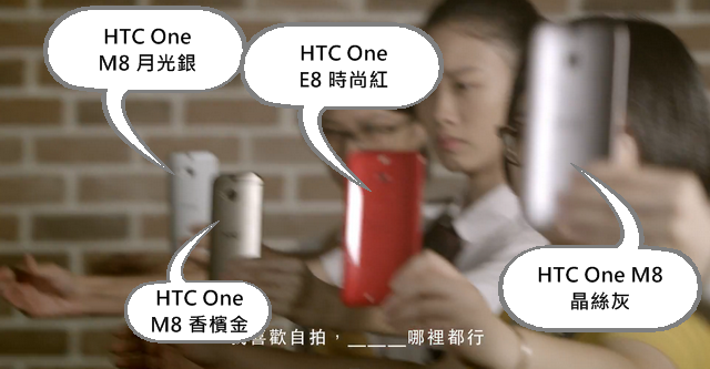 HTC ONE M8 銀灰 金色 粉 HTC Desire EYE 橘 HTC ONE E8 紅 RE.....白 哈哈哈哈哈 大約看到這些 本文章最後由( xie0970 )於 2014-12-21 13:56 編輯