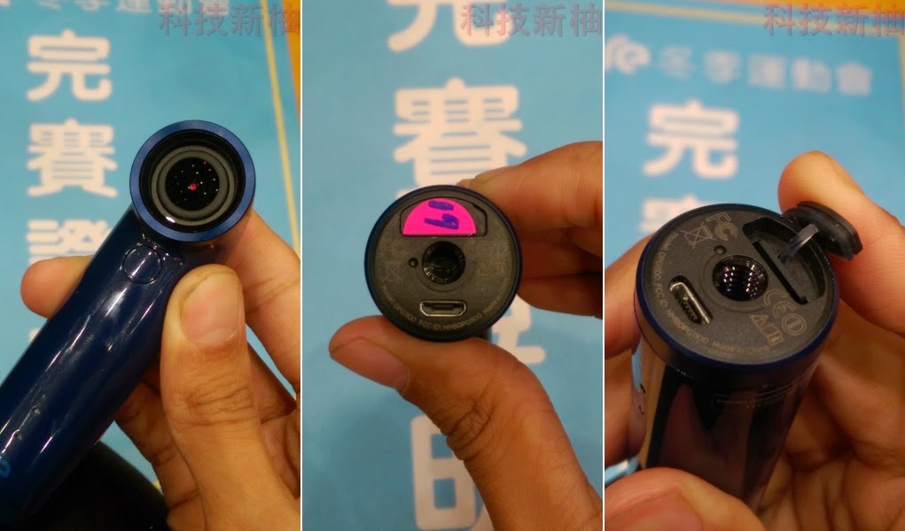 ▲ 一直到活動結束才有機會好好看一下外觀,HTC Re 正面來看就是一個鏡頭,在鏡頭底下是一顆按鍵,用於模式的切換,底部中間是腳架孔,左右兩旁分別是記憶卡槽與充電孔。
