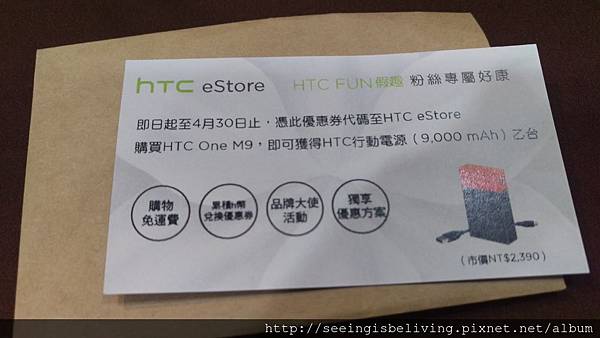 如有哪位捧由最近要入手M9快告訴我吧!這張卡片後面的一組序號,可以換行動電源喔~