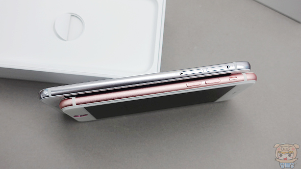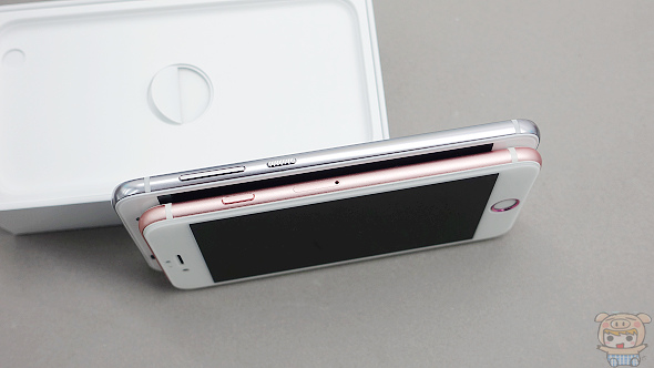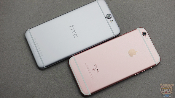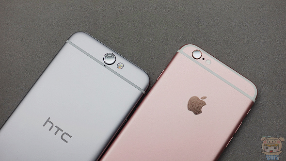 鏡頭位置不同,麥克風也不同位置。而且背面的設計其實也大不同。HTC One A9則是髮絲紋路的設計,iPhone 6s則是光滑的金屬質感,而且HTC One A9側邊和M9一樣,是金屬拋光設計,所以背面和側邊不太一樣,像是雙色金屬質感。