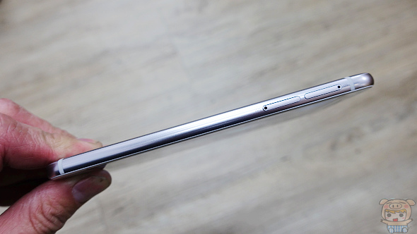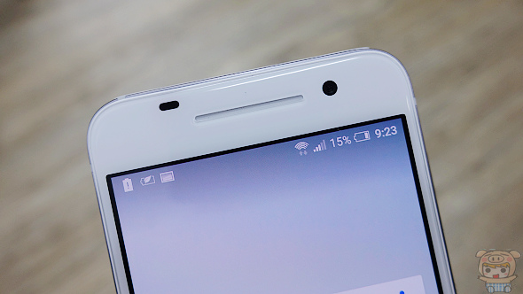 接著來說說HTC One A9的外觀,很多人都說他和iPhone很像,對啦,乍看之下是真的很像啦,因為整個外型其實很像,小米也是這樣覺得,但是如果兩隻放在一起看的話,就很明顯的看得出不一樣了,首先先來看一下正面,前方擴音孔,感應器及HOME鍵,完全是不同型狀與位址。