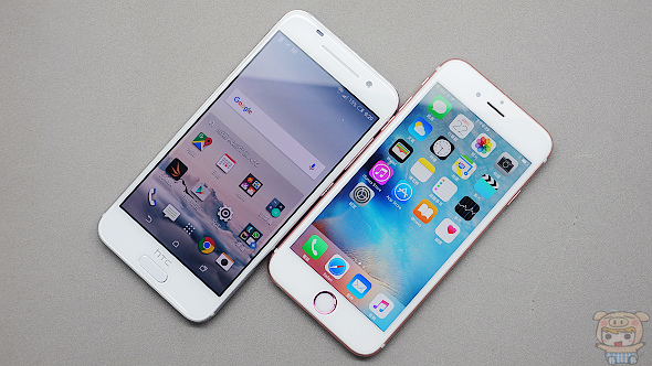 機身右側HTC One A9則是電源開關鍵及音量鍵,iPhone 6s 則是電源鍵與Nano SIM卡槽。