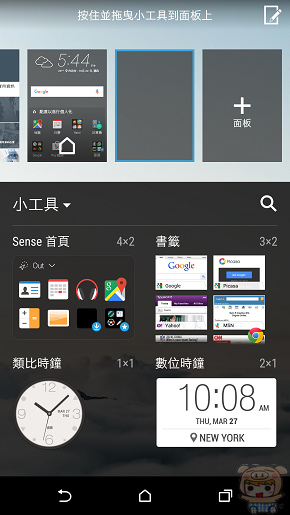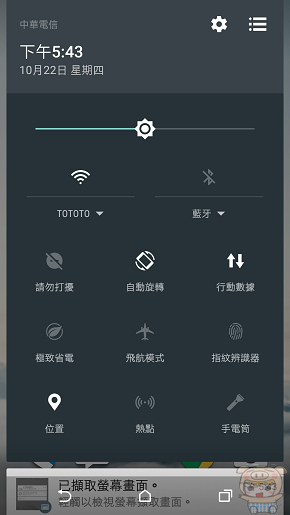 畫面由上向下滑時可以呼叫出下拉式快捷設定頁面,一般常用的設定選項,在這裏都可以看到,並可以自行編輯常用的功能選項,同時也提供了各式各樣的小工具,讓使用者操作更加的便利。