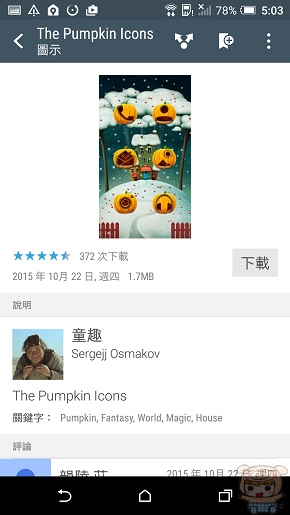 看到喜歡的主題,點選進入後,可以看到更多的介紹,及套用後,所有頁面所呈現的樣子,點選「下載」下載完成後再點選「套用」。