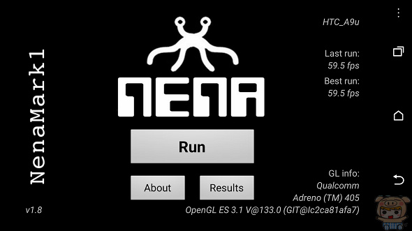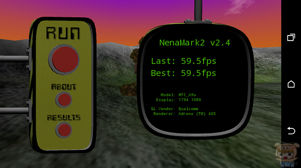 顯卡效能測試的部分,在NenaMark1所測得的分數為59.5fps。