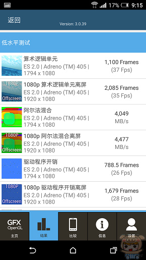 顯卡效能測試的部分,在NenaMark2所測得的分數為59.5fps。