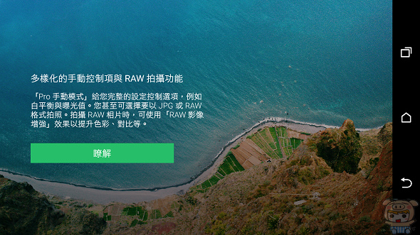 專業玩家級別的攝影效果,Pro手動模式提供了RAW檔拍攝功能,可將大量的色彩和訊息儲存在相片裏,讓使用者可以輕鬆的調整相片。
