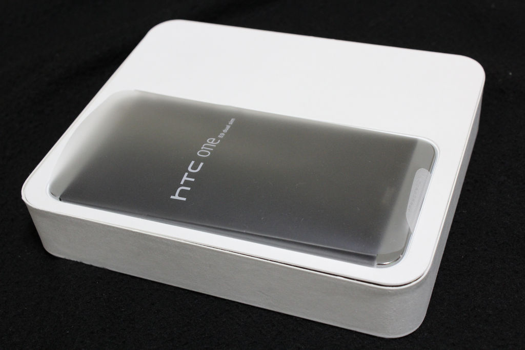 記得以前的 HTC 包裝盒曾用過緊密式的長盒(比較小但比較高), HTC One E9 dual sim 使用了寬扁式的盒子, 感覺比較大方。盒子很精緻, 判斷是以紙漿類為基礎材料, 再透過機器壓製成型。