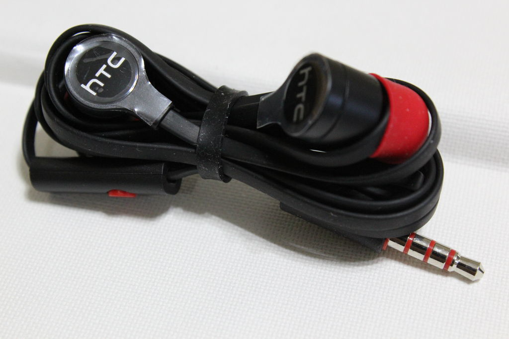 麥克風耳機, 上面有 HTC logo, 以黑紅兩色搭配, 典雅中帶著活潑。