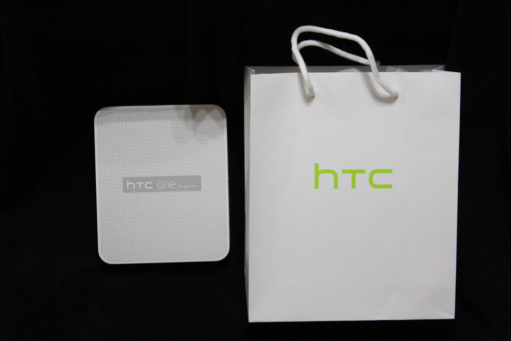 到 HTC 直營店購買, 盒子裝在一個白色小提袋內。整體包裝設計對時尚有加分效果, 成功營造出精品的感覺。