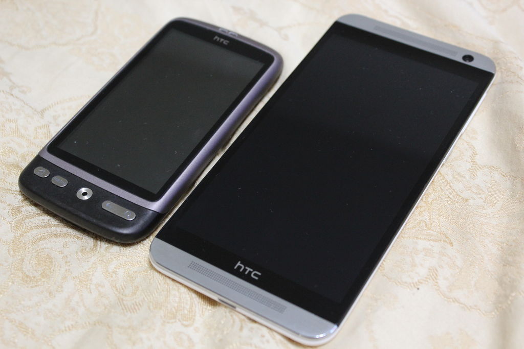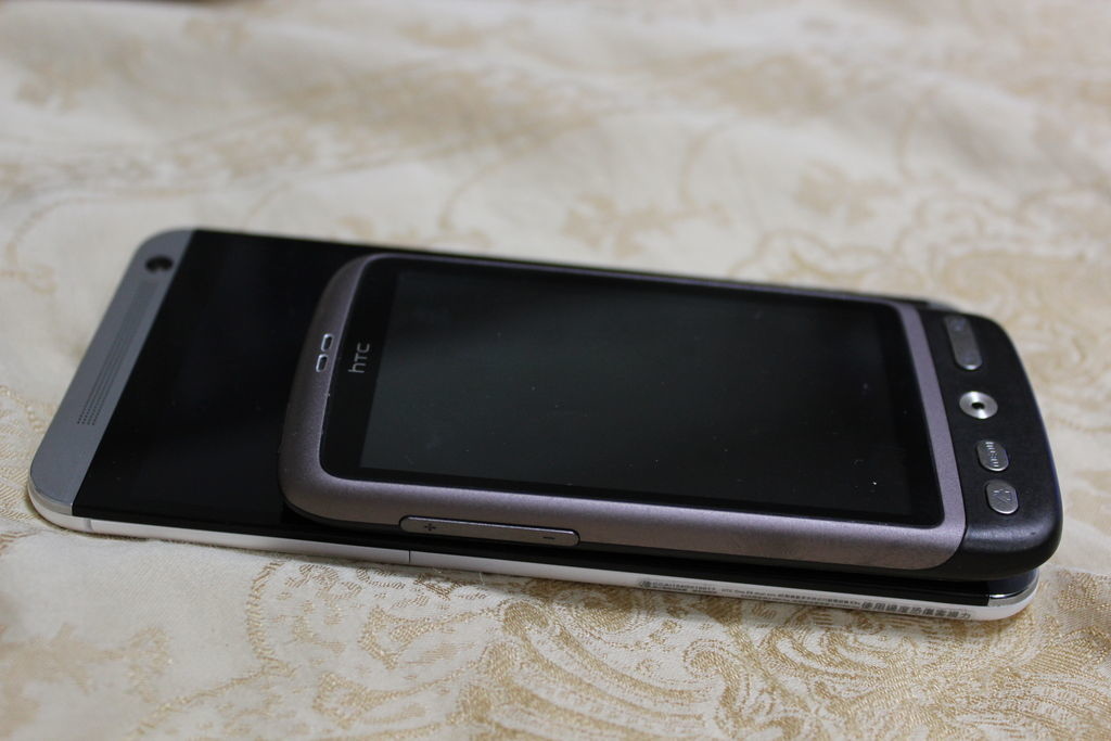 隨時間推移, 手機的設計也越來越輕薄。與舊機 HTC Desire 的疊疊樂,  HTC One E9 Dual Sim 5.5" 薄很多, 其厚度是 7.49mm , 重量是 148g。