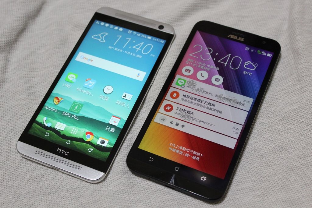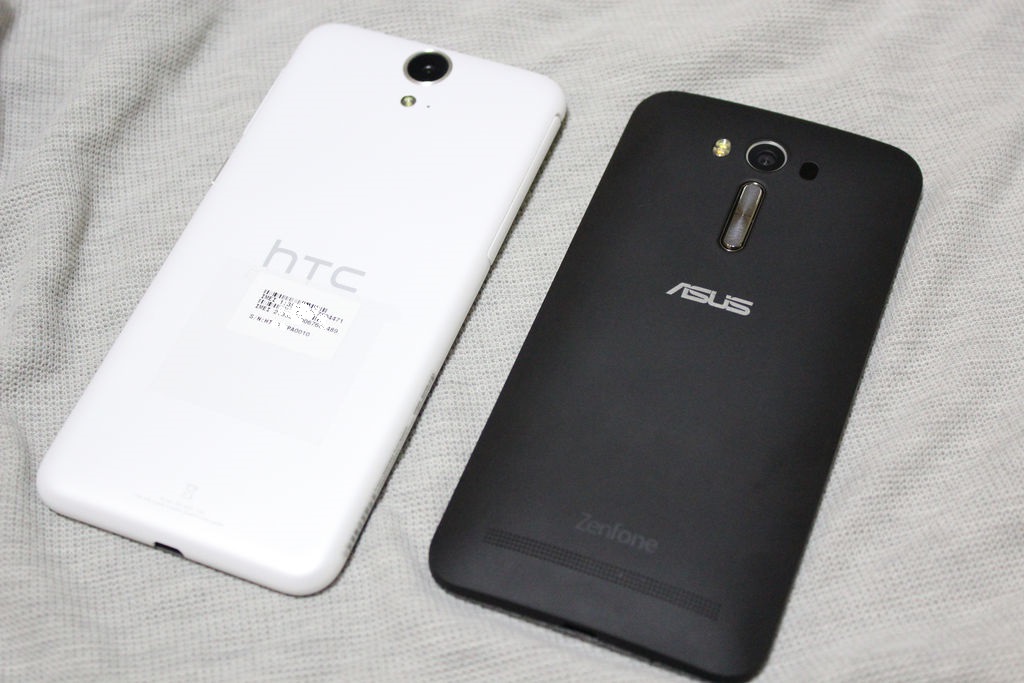 與近期也很紅的 Asus ZenFone 2 Laser ZE550KL 相比(等級是 E9 dual sim 比較高, 只是手邊剛好有), HTC One E9 dual sim 外觀顯然比較精緻, 時尚感濃厚。