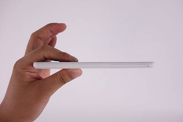 左側為電源鍵,音量鍵,外型跟整體一樣圓滑外觀,回饋力恰當,還蠻好按的