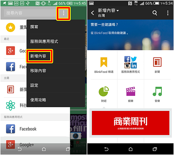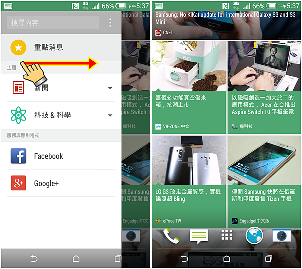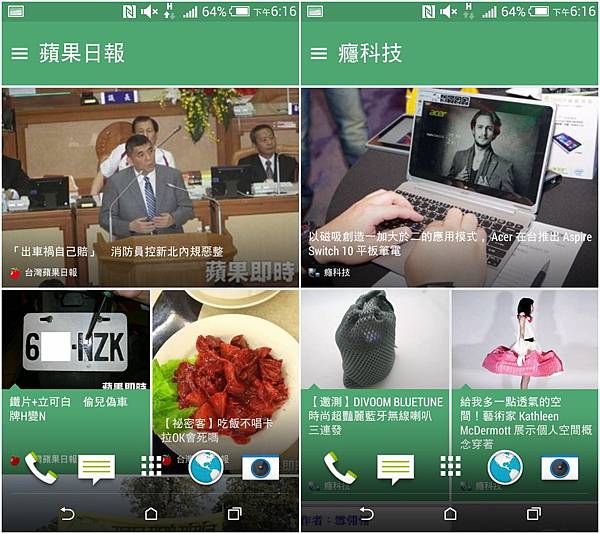 在Sense 6.0最明顯的改變是招牌介面BlinkFeed,顏色變的比較活潑一點,而且提供內容的來源變更多,除了可串連自己的社群服務以外