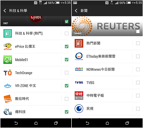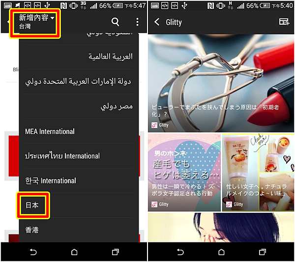 BlinkFeed在Sense 6.0改版後還可以新增不同國家的內容,如美國,日本,南非,選擇非常豐富