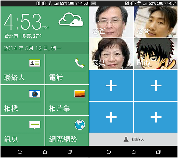 對於不熟悉智慧型手機的長輩來說,Desire 816內建簡易模式將整體操作的介面簡化,常用的功能最大化,包括電話,簡訊,拍照,上網,最常撥的聯絡人也可以建立捷徑,而且字體有刻意放大