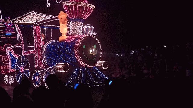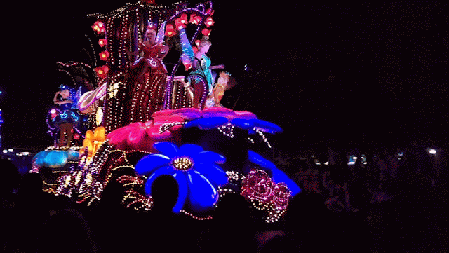 因為沒有輔助拍攝的設備,我捨棄了錄影方式,改用手持連拍來記錄夜晚美麗的花車